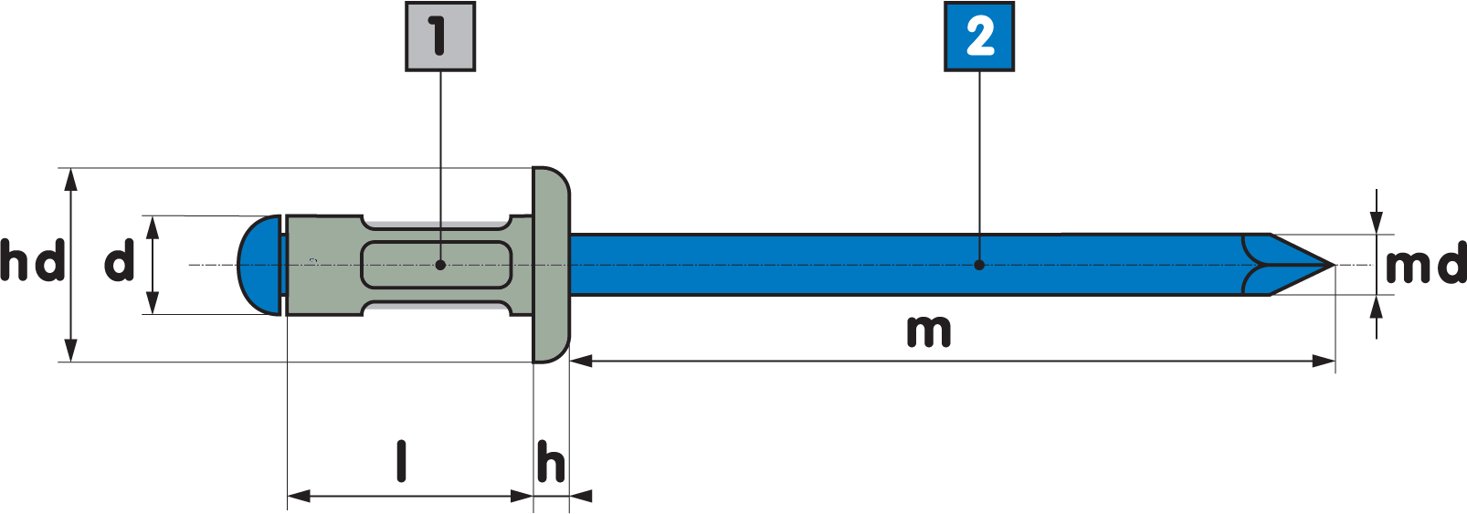 Multigrip Rivet Dome Head - Alum body/Steel Mandrel - Ral 7038 - GOOSEWING GREY