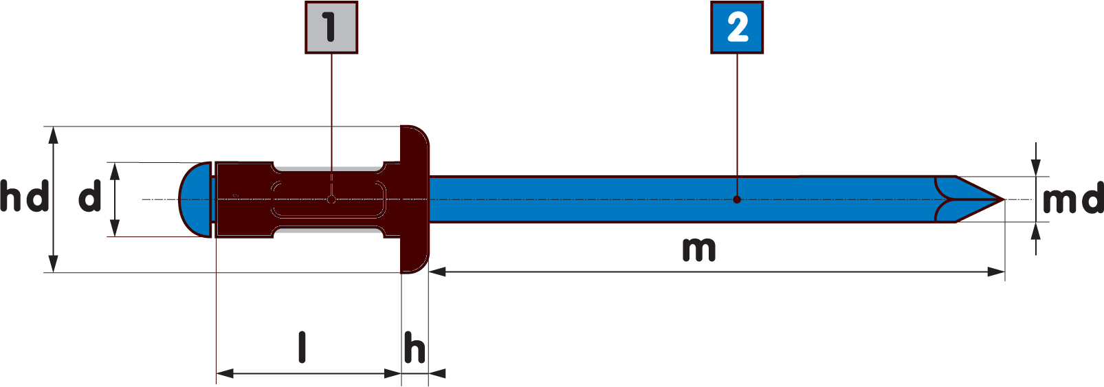Multigrip Rivet Dome Head - Alum body/Steel Mandrel - RAL 8028 - TERRA BROWN