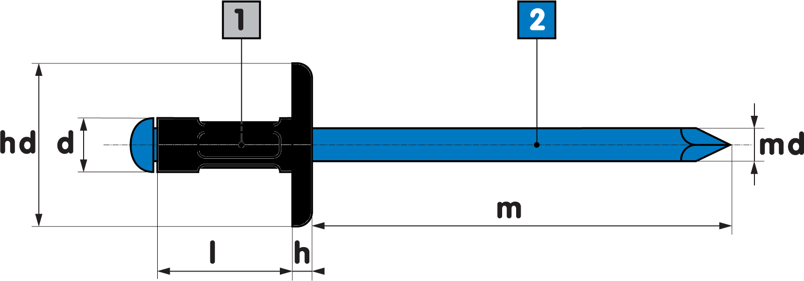Multigrip Rivet Large Flange - Alum body/Steel Mandrel - RAL 9005 - BLACK